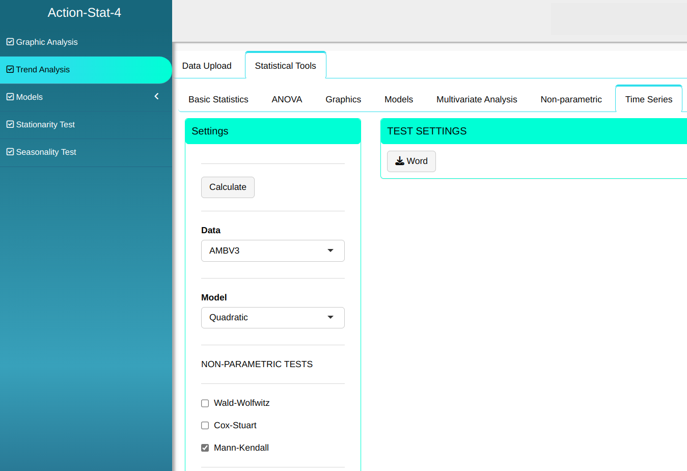 In the Trend Analysis tool, you can perform non-standard tests parametric tests to check whether the series shows a trend. Another option of this tool, is to adjust parametric models for the trend.