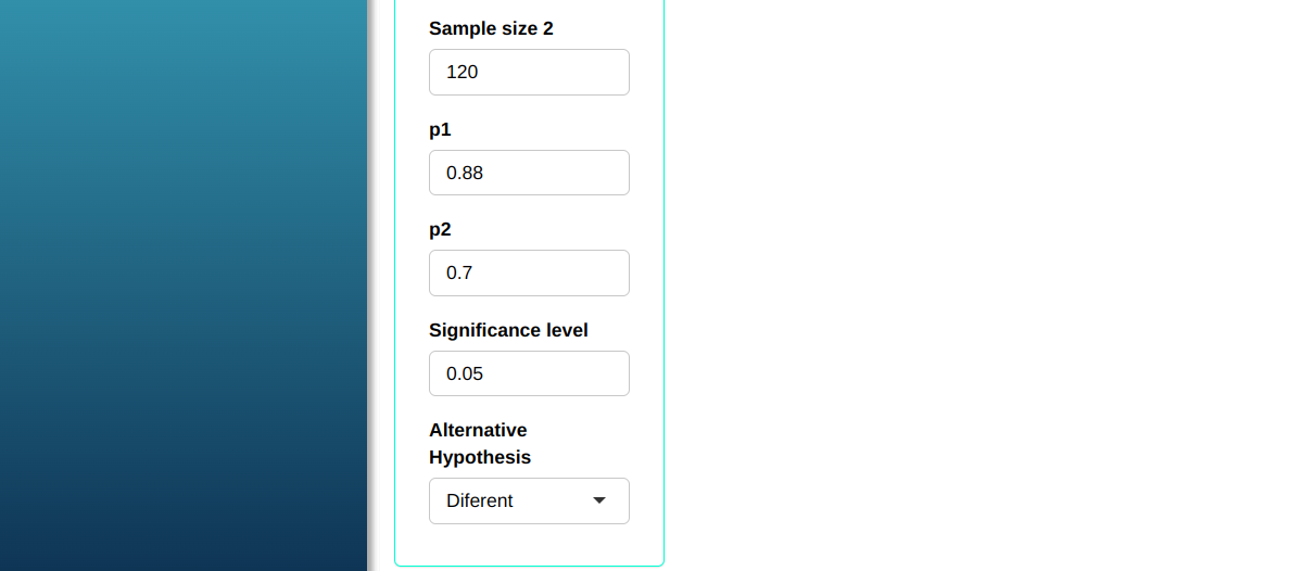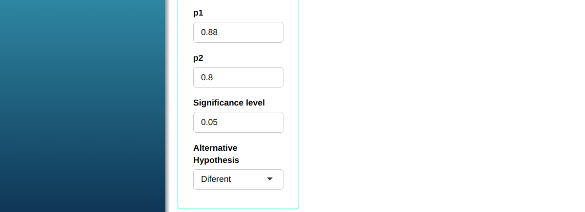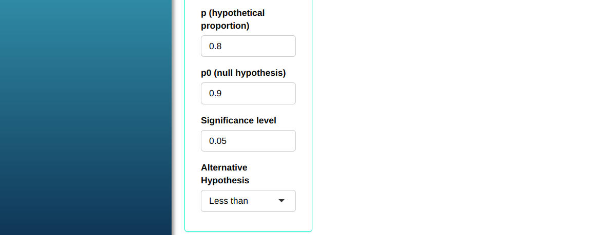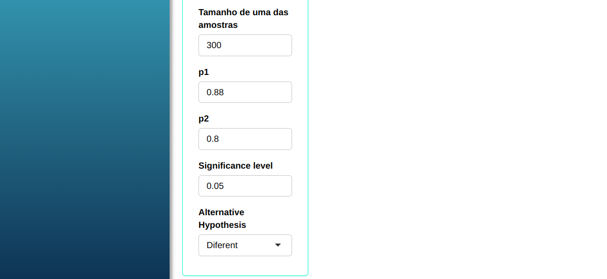 With this, we conclude that the test has a power of approximately 99.1% in detecting a difference between the proportion of the null hypothesis $p_0$ = 0. and a possible real proportion p = 0.8.
