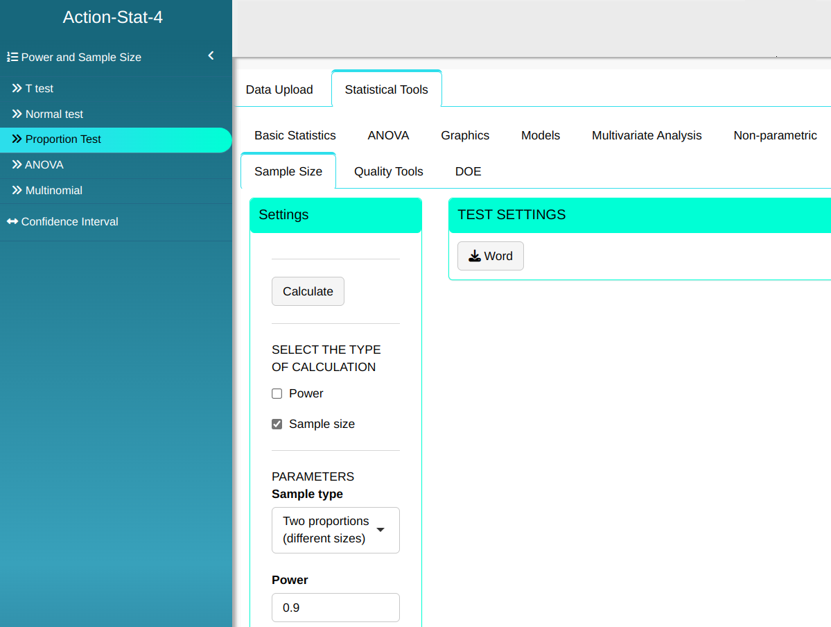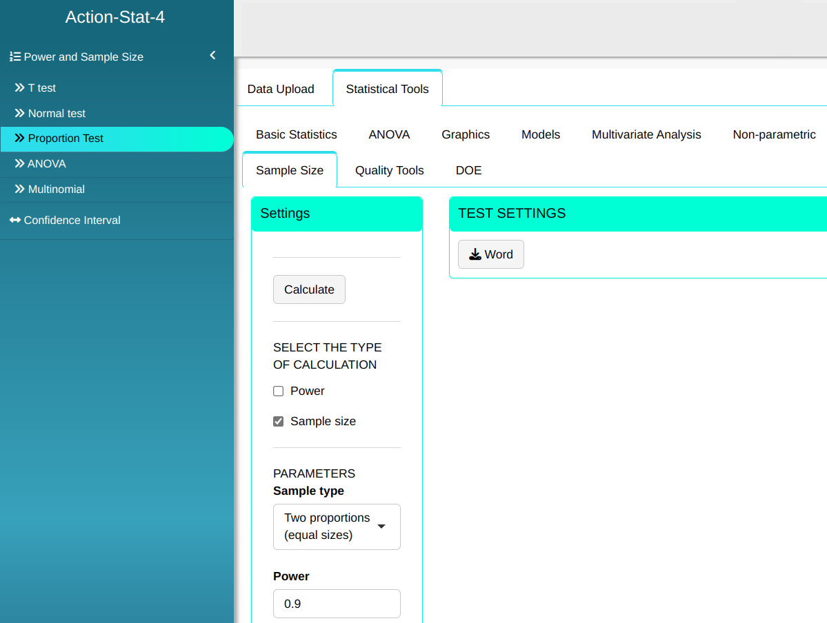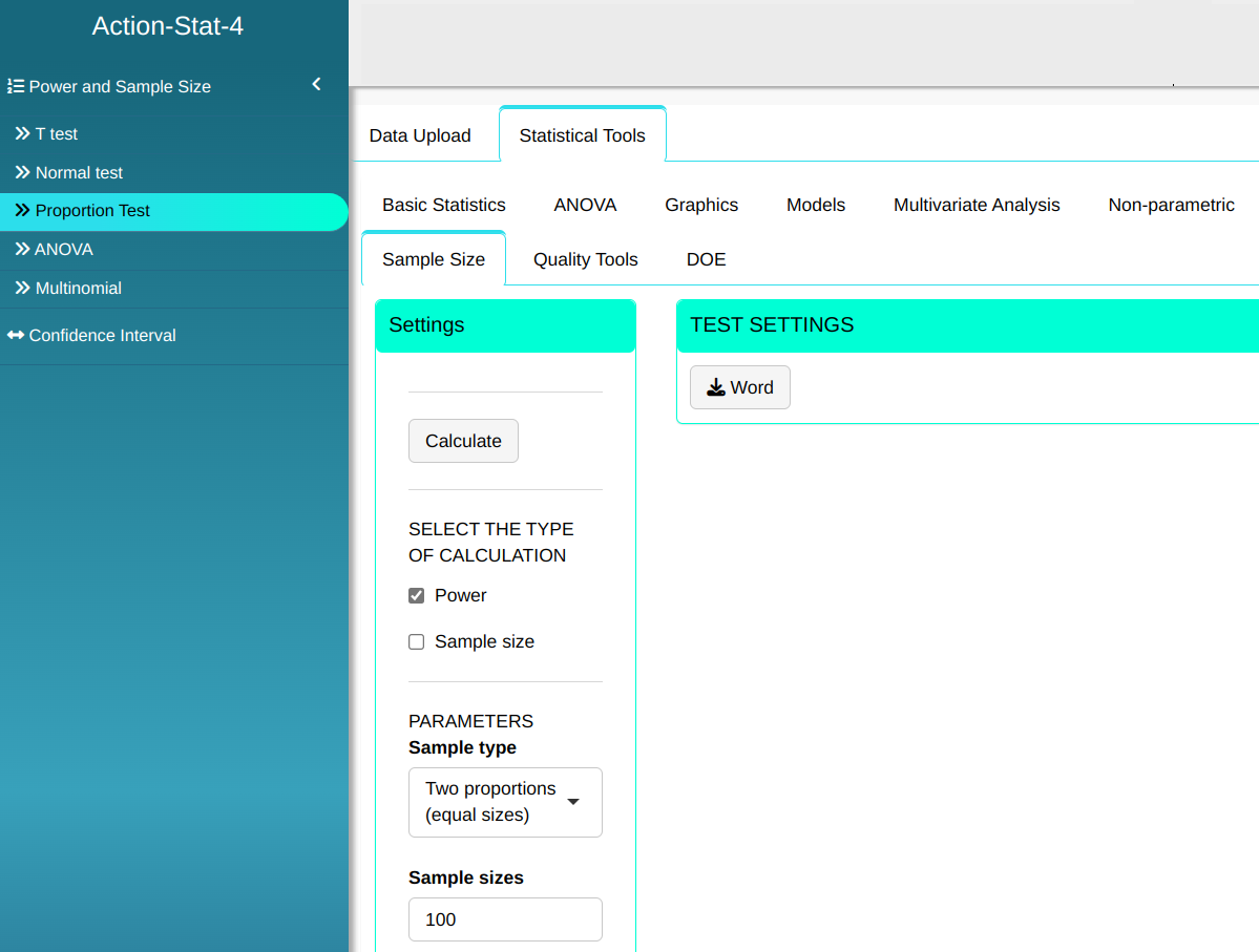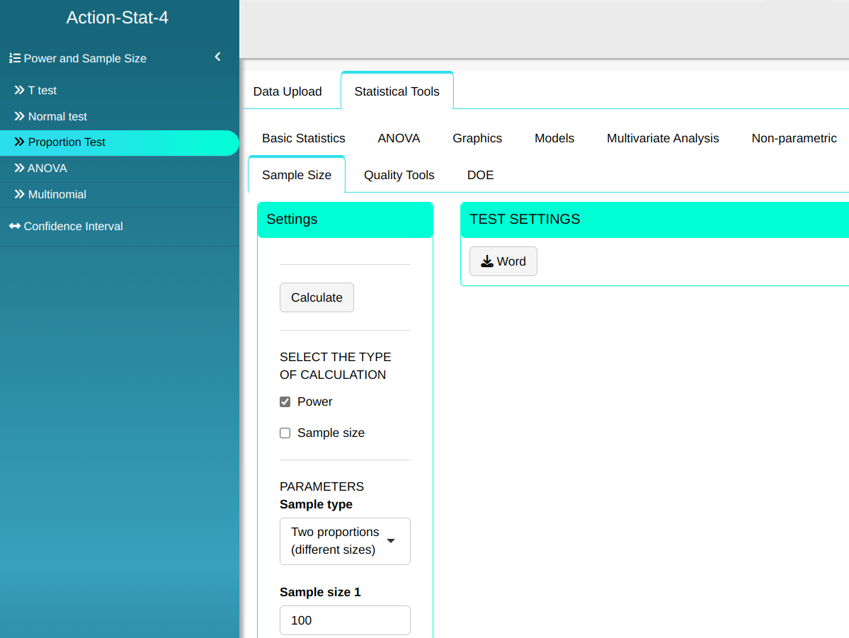 Then click Calculate we obtain the results. You can also generate the analyses and download them in Word format.