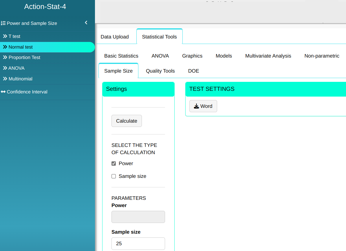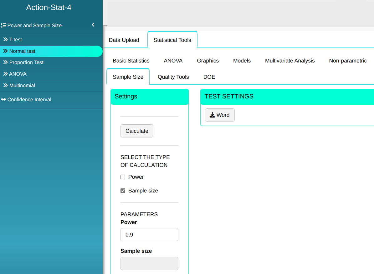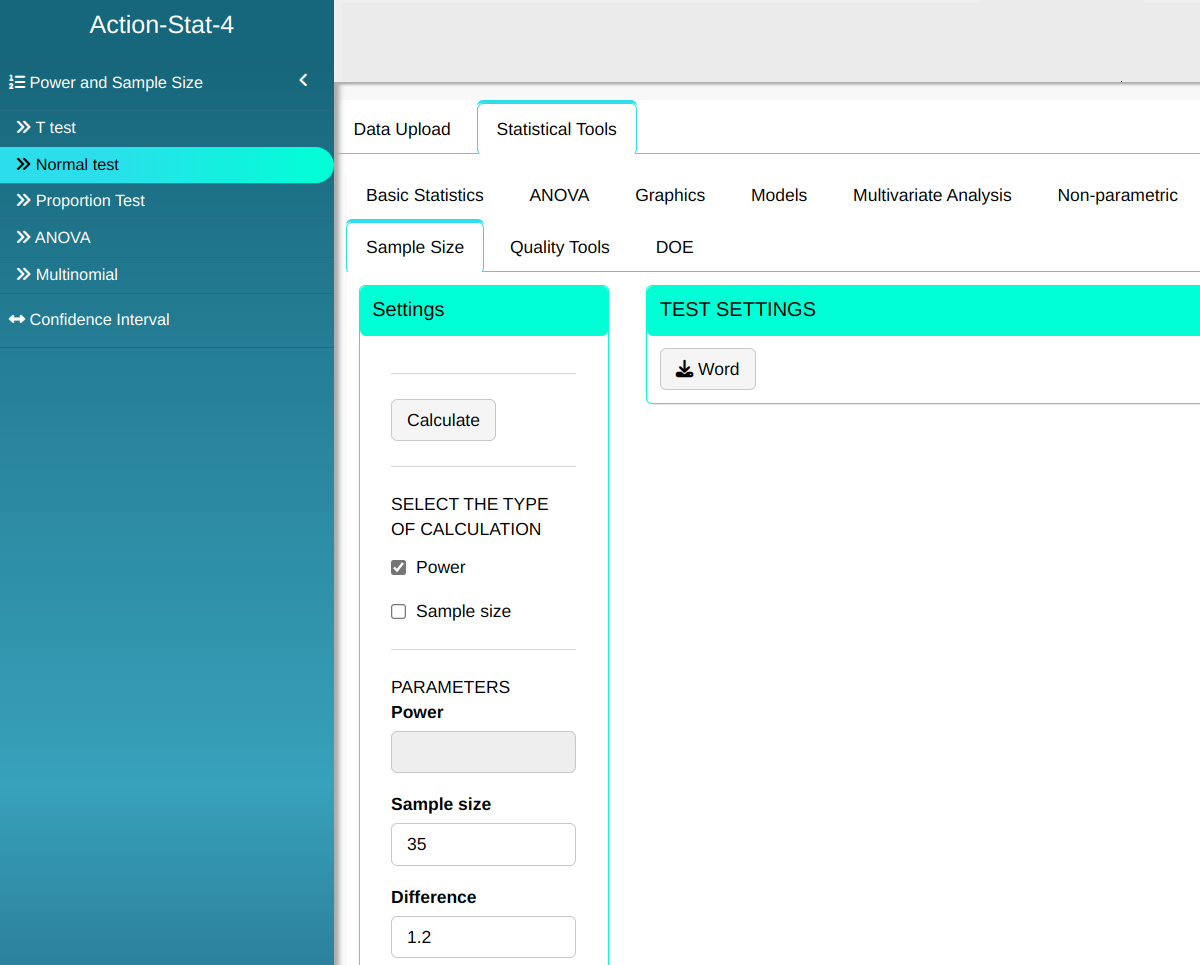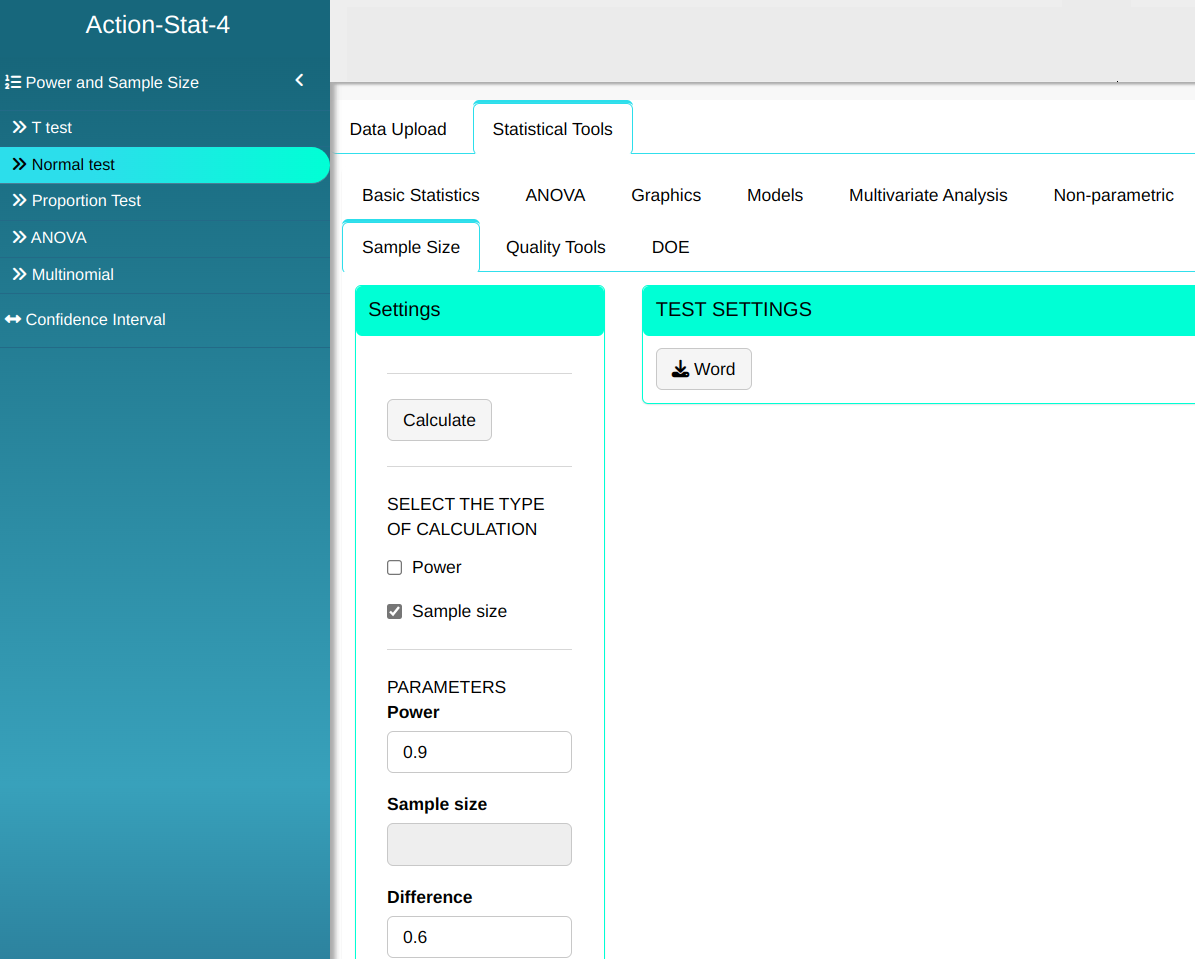 Then click Calculate we obtain the results. You can also generate the analyses and download them in Word format.