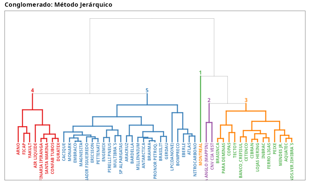 Realizaremos análisis de conglomerados. Configuramos conforme la figura de abajo. En este ejemplo dividiremos las empresas en cinco conglomerados.