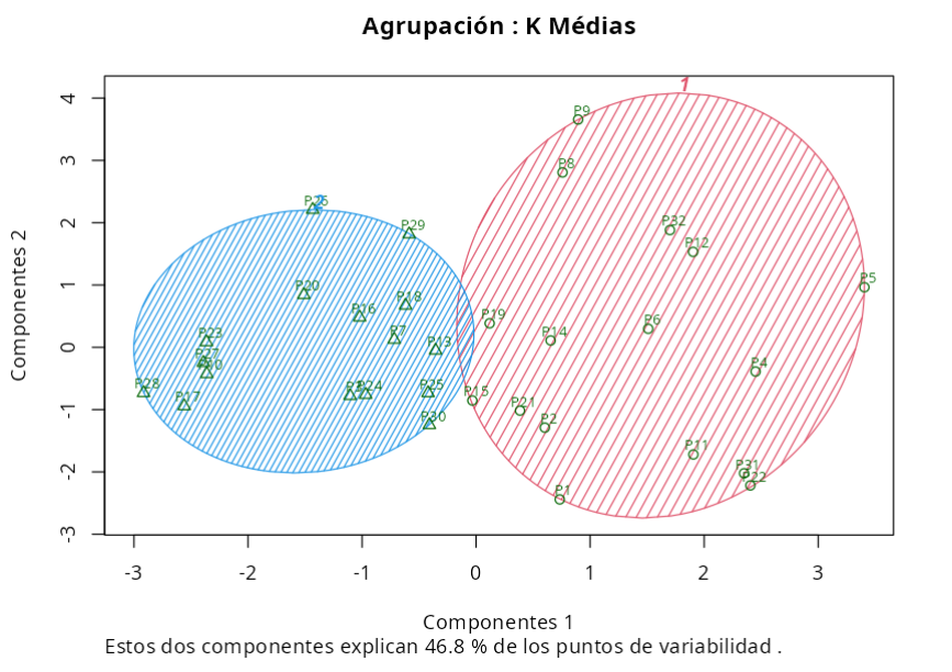 Una posible conclusión de esta segmentación es la siguiente: los clientes clasificados en el Grupo 1 tienen mayor preferencia por cervezas oscuras con un sabor más intenso, mientras que los clientes clasificados en el Grupo 2 tienen mayor preferencia por las cervezas de color "claro".