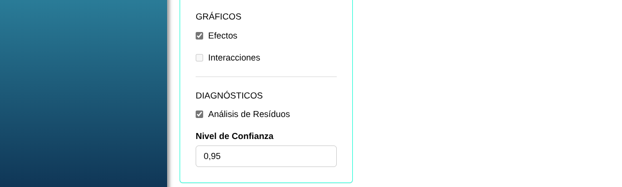 | Nivel | Límite Inferior | Efecto para media | Limite Superior |