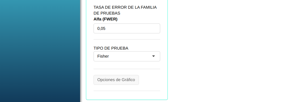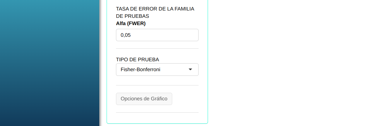 Con los mismos datos del Ejemplo 1, ahora aplicaremos el Test de Fisher-Bonferroni.