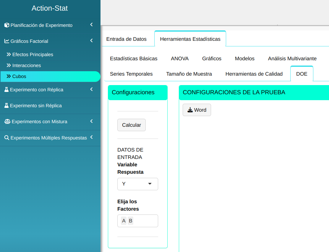Realizaremos el análisis. Para ello basta acceder a DOE e seleccionamos las opciones conforme la figura de abajo.