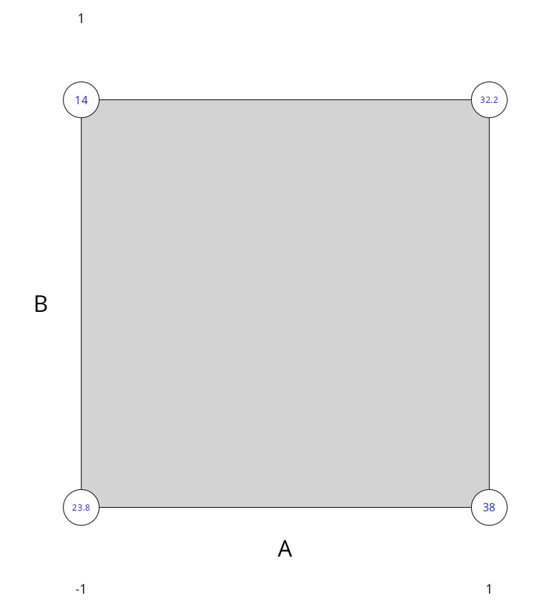 | (El número de tratamientos es 2k, en este caso $2^2$=4) | |