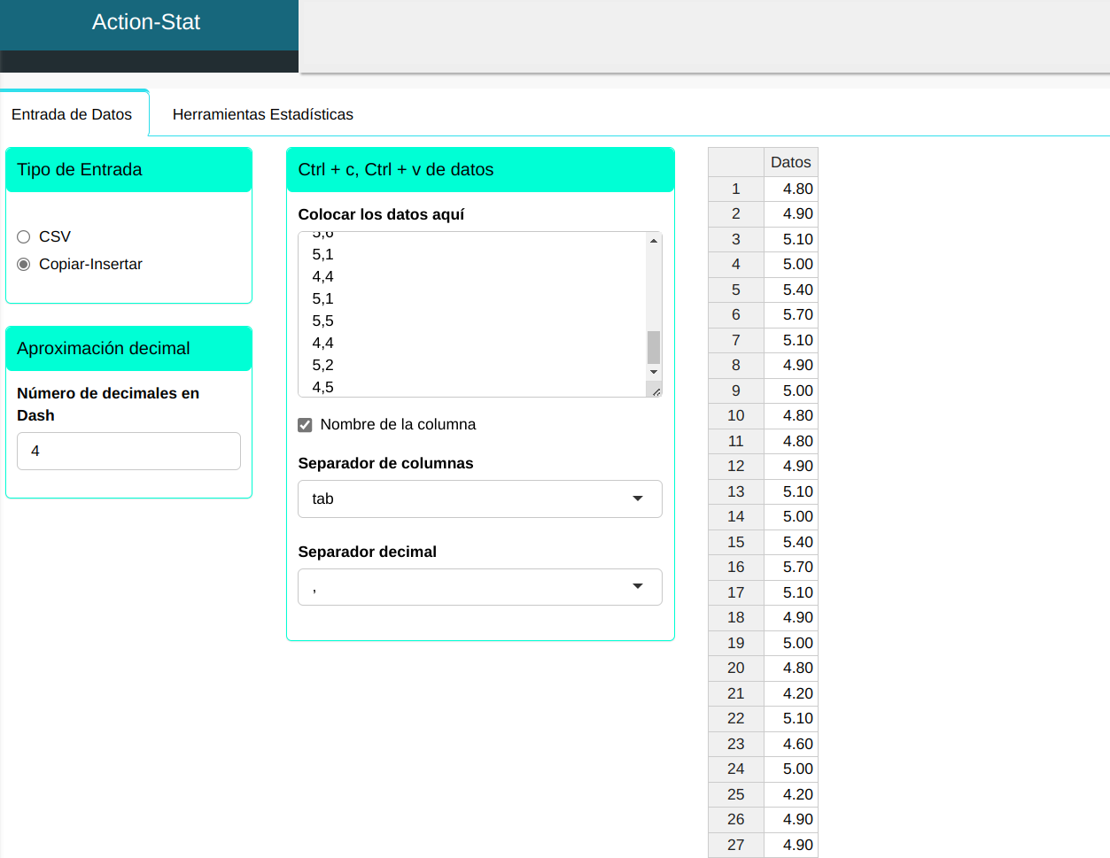 La herramienta Distribución de frecuencia de Action le permite separar los datos por clases, el resultado se presenta a través de una tabla y un gráfico de barras. El gráfico se puede personalizar en "Opciones de gráfico".