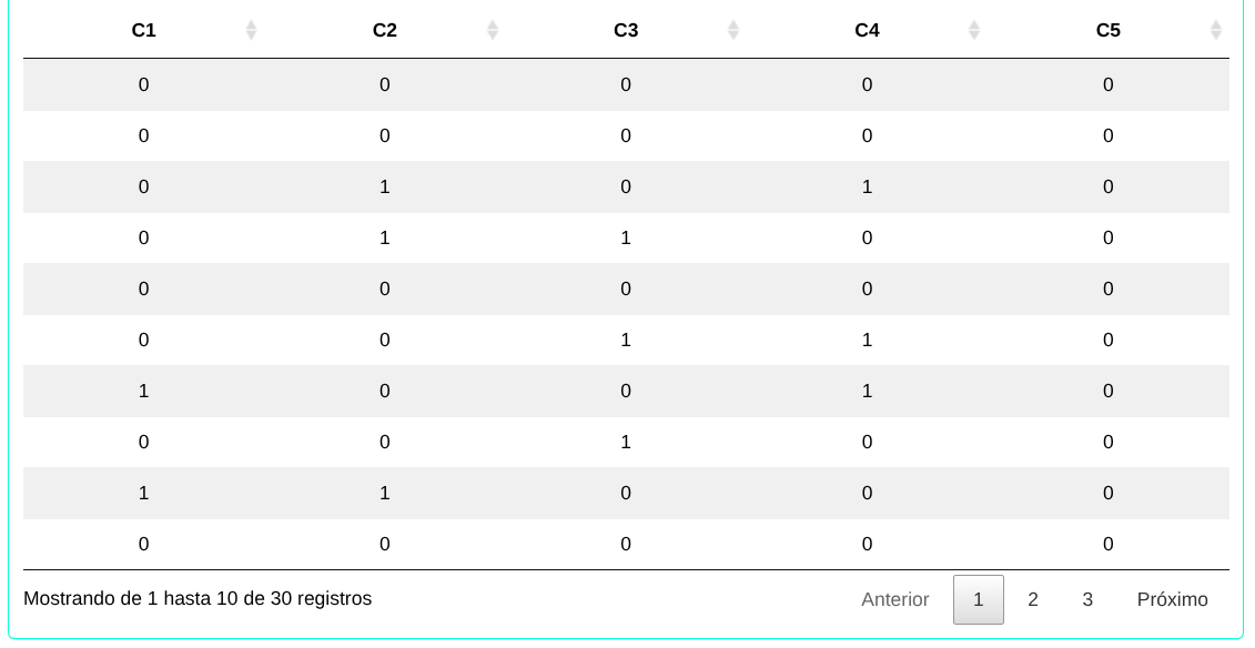 Considera un proceso distribución Poisson con una tasa de 0,2 defectos por unidad. Genere cinco muestras aleatorias, cada una con un tamaño de 30.