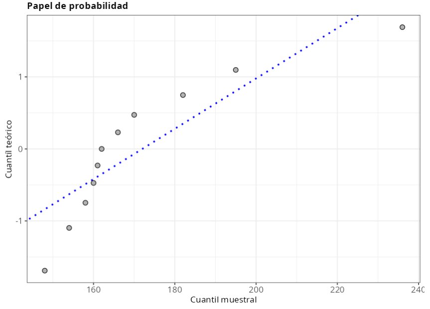 Se quiere saber si el peso de determinadas piezas sigue una distribución normal. Para esto se obtuvo una muestra con 11 medidas (peso) de las piezas (en libras).