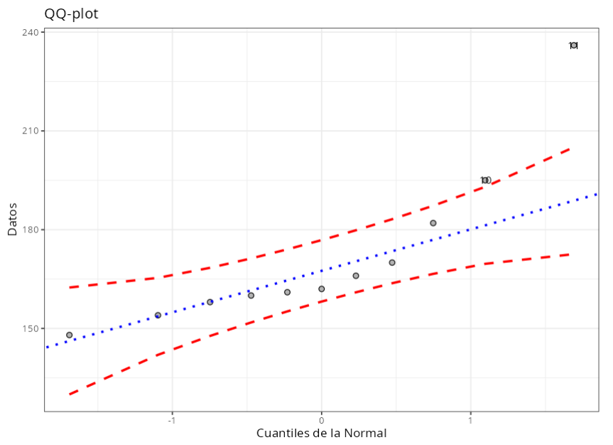 | Obs. | Cuantiles normales | Datos | Criterio |