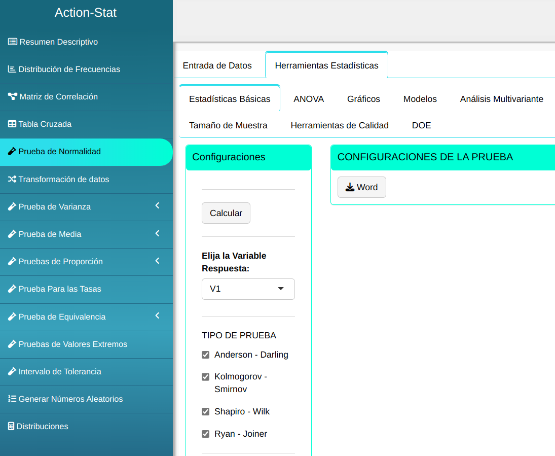 En seguida. haga un clic en Calcular para obtener los resultados. También es posible generar los análisis y descargar en el formato Word.