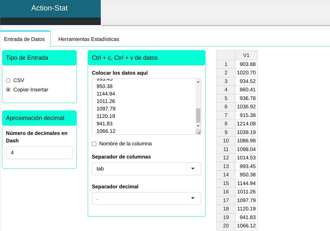 Un ingeniero de producción quiere probar, basándose en los datos de la tabla a seguir, y para un nivel de significancia $ \alpha=0.05 $, si la altura media de una asta de tierra está próximo del valor nominal 1055 mm. Se analizó una muestra de 20 astas de tierra. y se hará un Upload de los datos para el sistema.