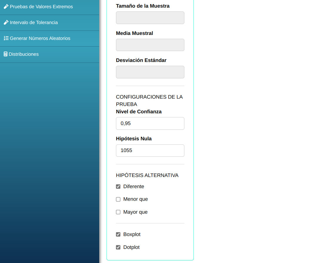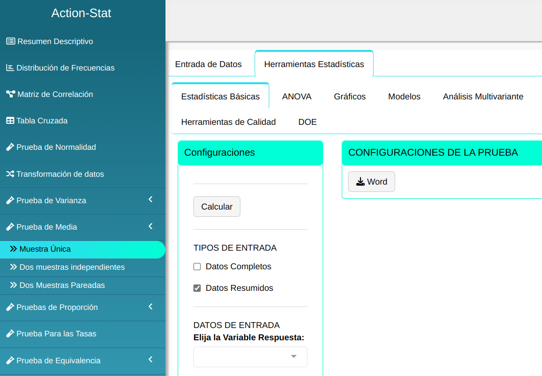 Para realizar la prueba de la media, se realiza la siguiente configuración que se muestra en la figura siguiente.