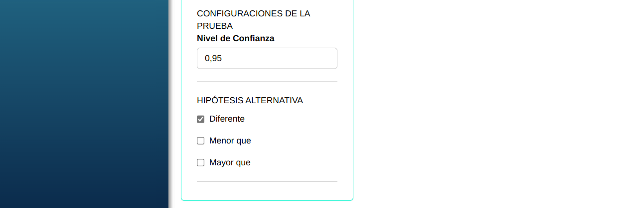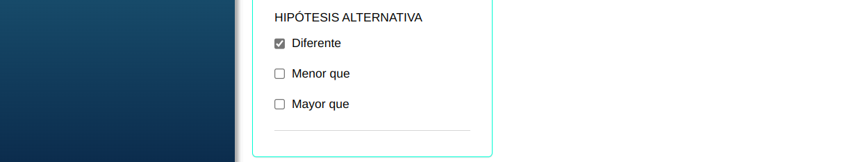 | Hipótesis alternativa | Diferente de 0 |