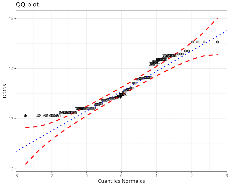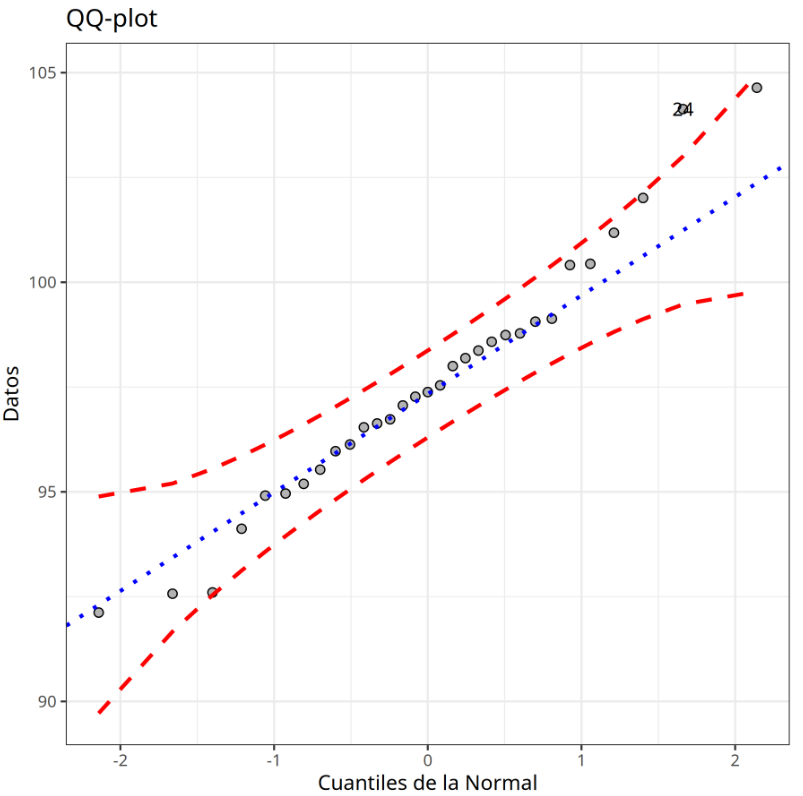 | Obs. | Cuantiles Normales | Datos | Criterio | |