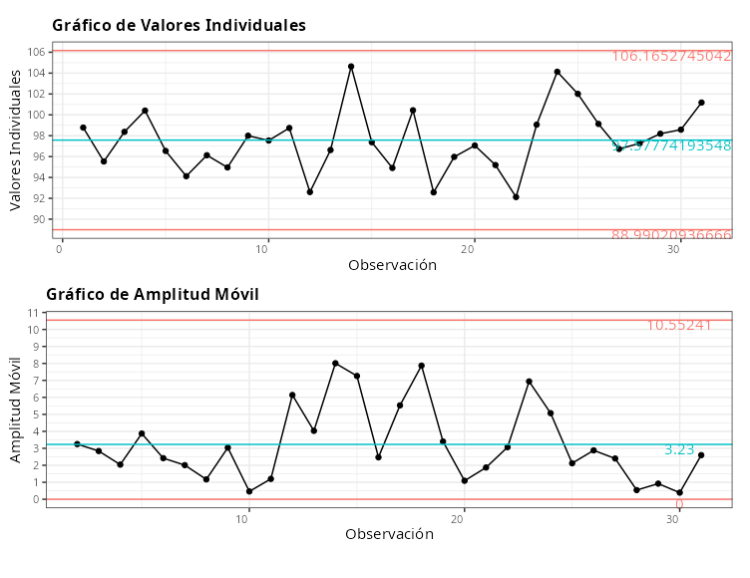 Para evaluar la estabilidad de los resultados a lo largo del tiempo, lo más frecuente es recurrir al análisis mediante gráficos CEP, Sin embargo, esta técnica sólo se recomienda en los casos en que no haya muchos subgrupos de datos. La recomendación es un máximo de 150 subgrupos para permitir una interpretación adecuada del gráfico de control. En los casos en que haya más de 150 subgrupos, lo mejor sería realizar un análisis de series temporales.