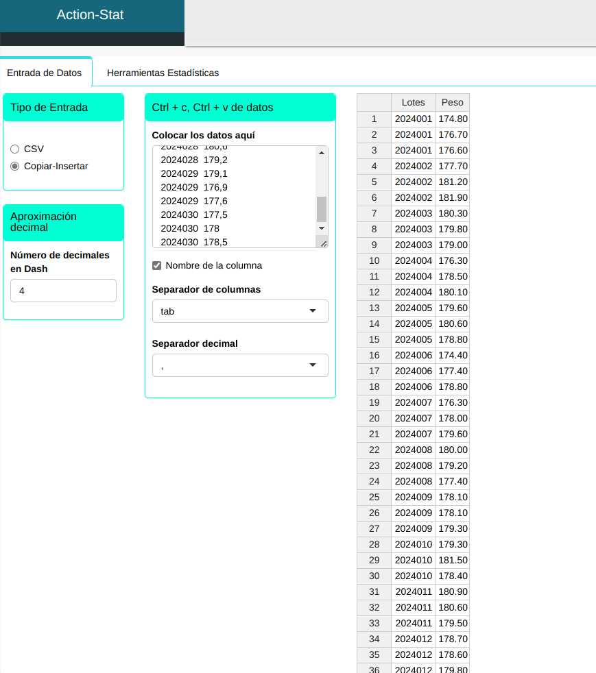 La orientación de ANVISA exige que las diversas industrias farmacéuticas realicen una evaluación estadística de los resultados del control del producto en proceso y del producto terminado. La metodología aquí presentada está bien fundamentada y sigue los requisitos de la Guía ANVISA (2012). Action Stat proporciona una herramienta estadística que permite la generación de informes completos de análisis de calidad de producto que contienen una metodología estadística que sigue el siguiente flujo: en primer lugar, se realiza un análisis exploratorio de los resultados con un resumen descriptivo y un gráfico BoxPlot. A continuación, se realiza una prueba de ajuste de distribución. Luego se evalúa la estabilidad del proceso utilizando cartas de control. A esto le sigue una evaluación de la capacidad y el rendimiento del proceso y, finalmente, una prueba de comparación de múltiples lotes.
