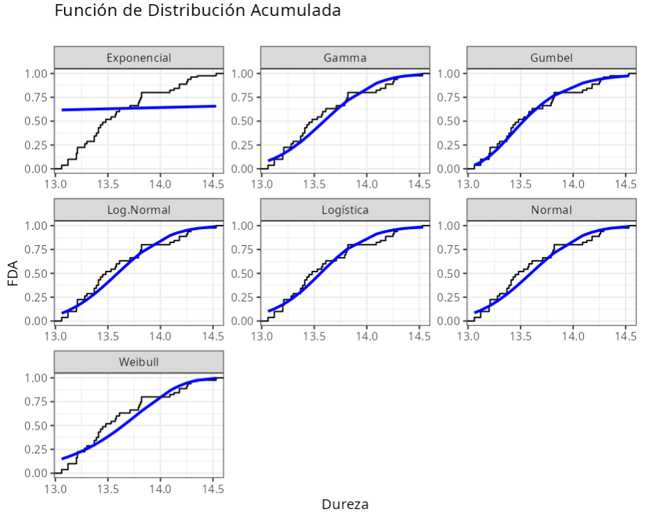 Ninguna de las distribuciones consideradas puede usarse para modelar la distribución de datos.