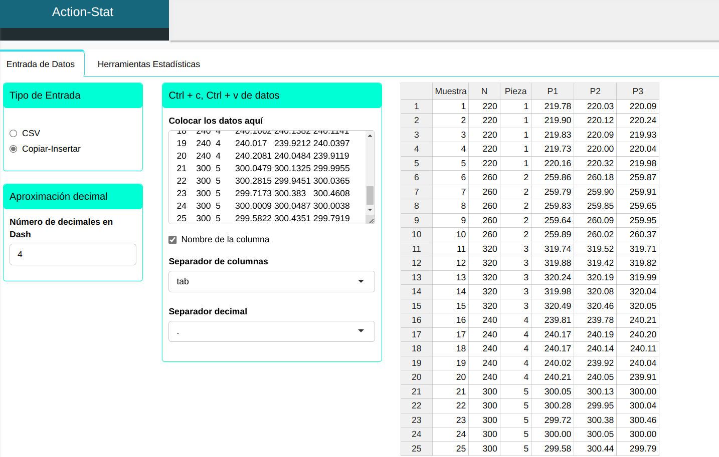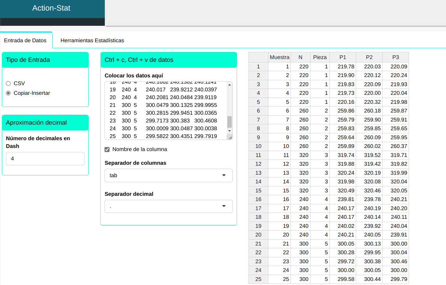| Muestra | N | Pieza | P1 | P2 | P3 |