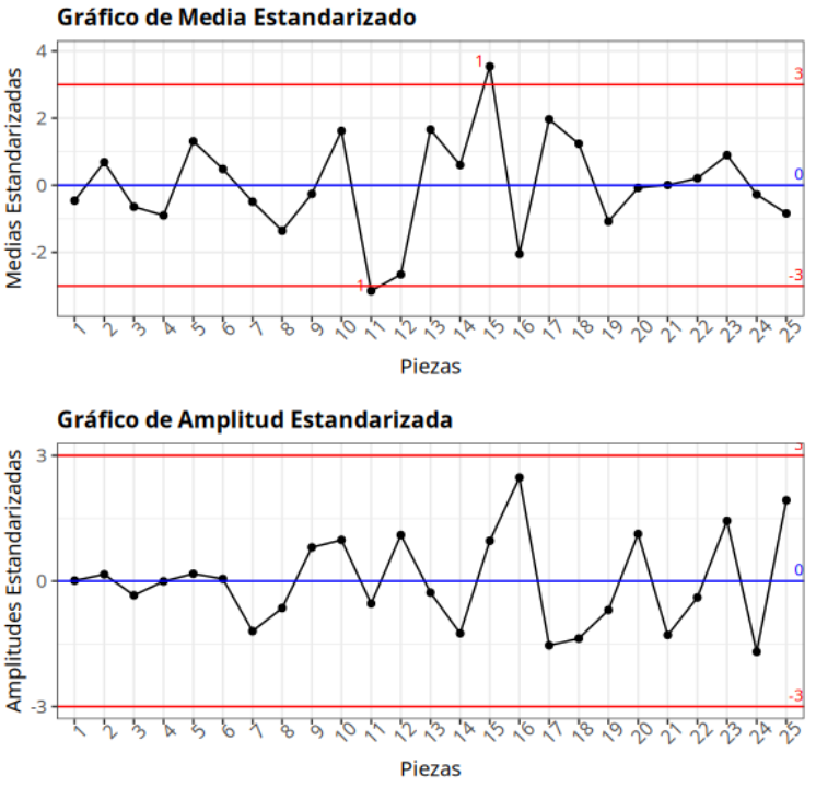 | Piezas | Medias Estandarizados | Amplitudes Estandarizadas | |