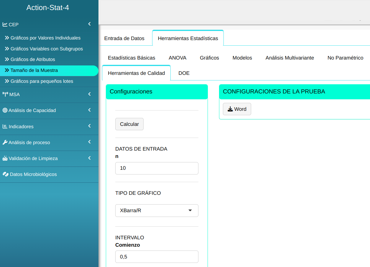 Clicando en Calcular obtenemos los resultados. También se puede generar y descargar los resultados en un archivo Word.