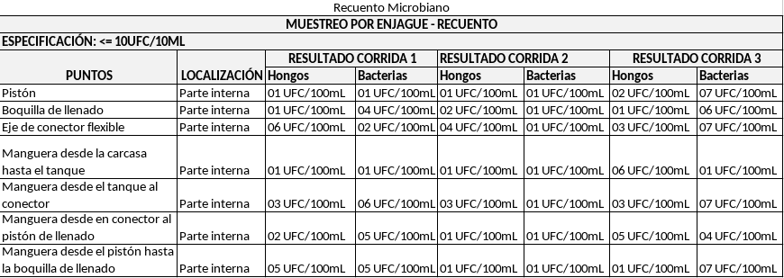 En un determinado muestreo de enjuague se realizó un recuento microbiano de hongos y bacterias, como se puede observar en la siguiente tabla: