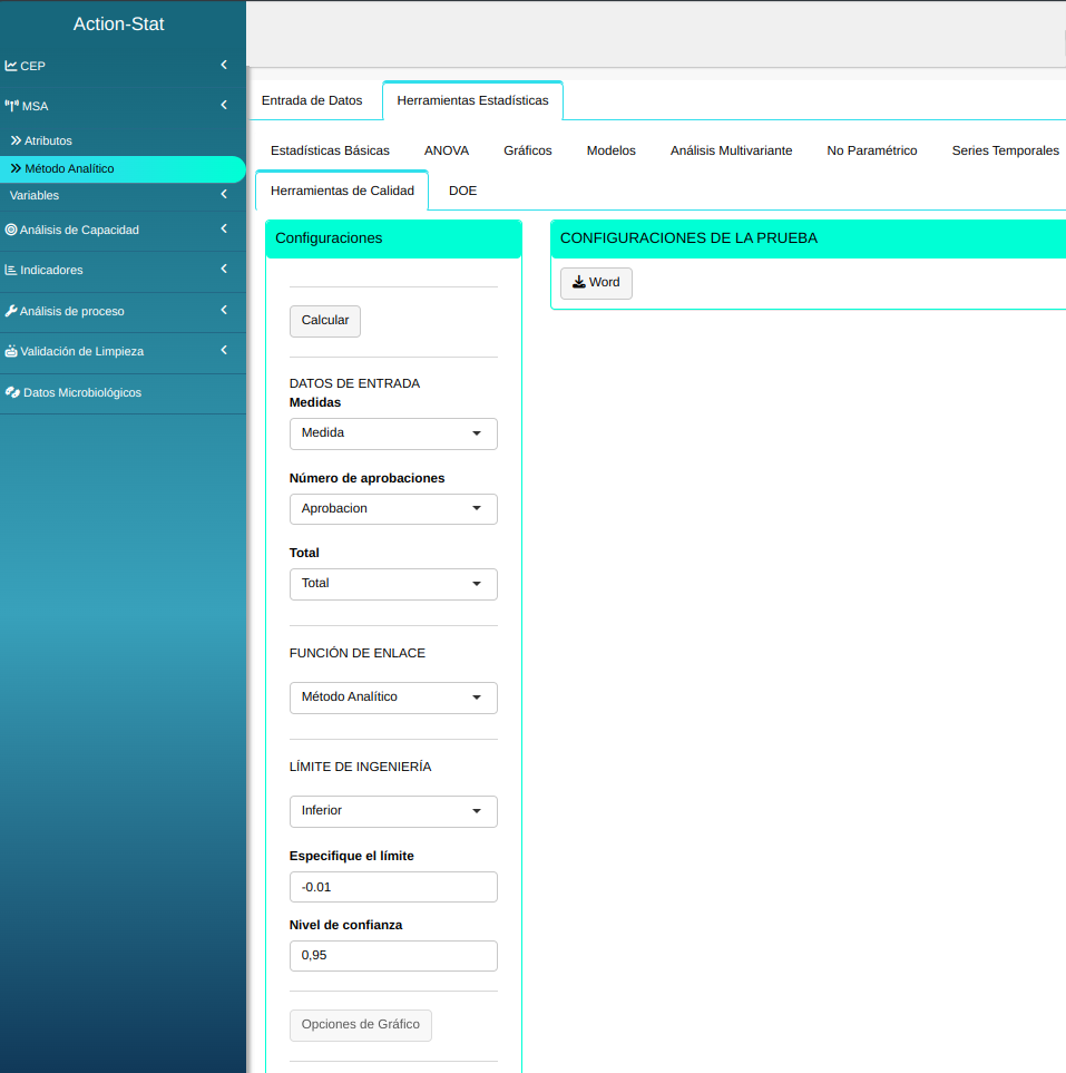 Clicando en Calcular obtenemos los resultados. También se puede generar y descargar los resultados en un archivo Word.