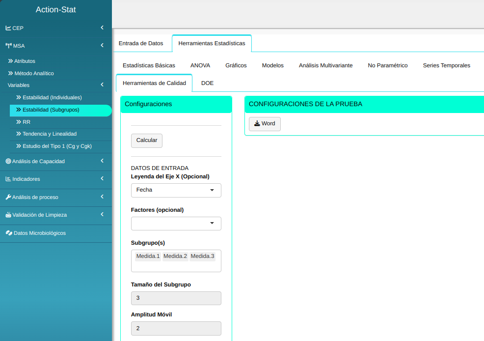 En seguida. haga un clic en Calcular para obtener los resultados. También es posible generar los análisis y descargar en el formato Word.