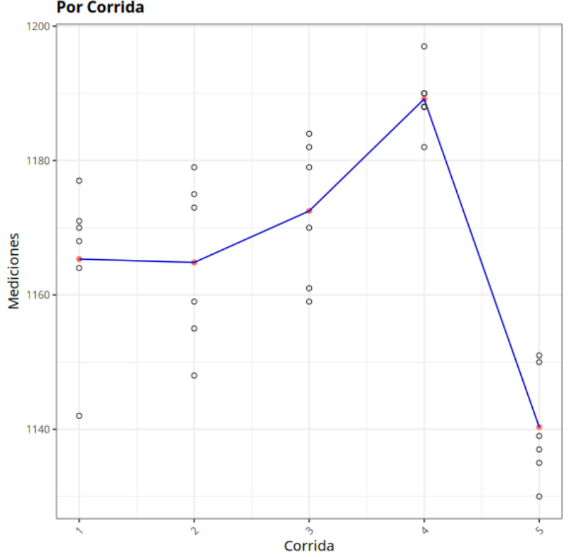 A continuación consideramos la característica de resistencia a la tracción realizada con muestras de acero. Se seleccionaron cinco series de acero. con poca variabilidad dentro de las series y variabilidad natural del proceso (producción) entre series. Se utilizaron dos operadores con 3 mediciones de cada ejecución por operador.