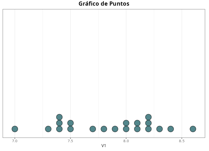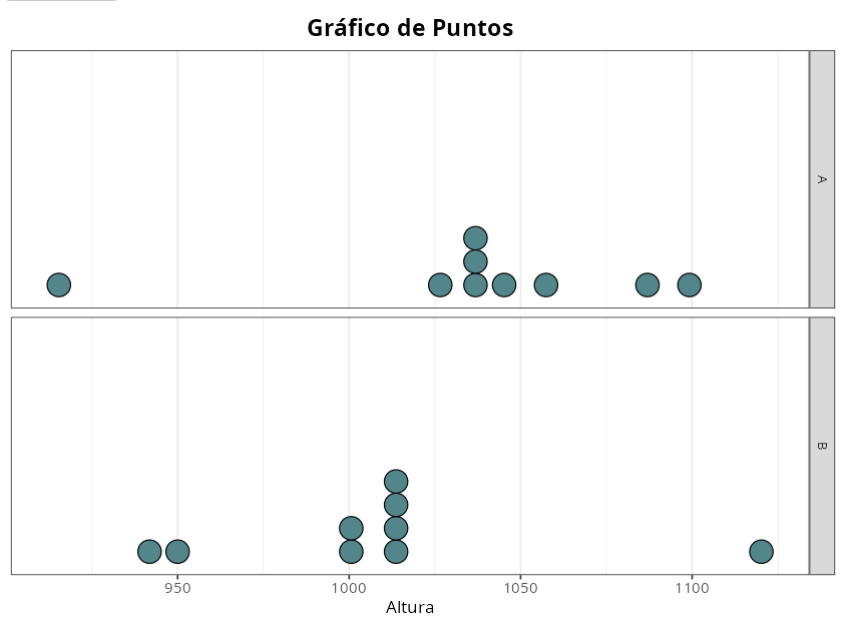 Dotplot representa cada observación obtenida en una escala horizontal, permitiendo visualizar la distribución de datos durante este tiempo. Además, permite la comparación visual de dos conjuntos de datos.