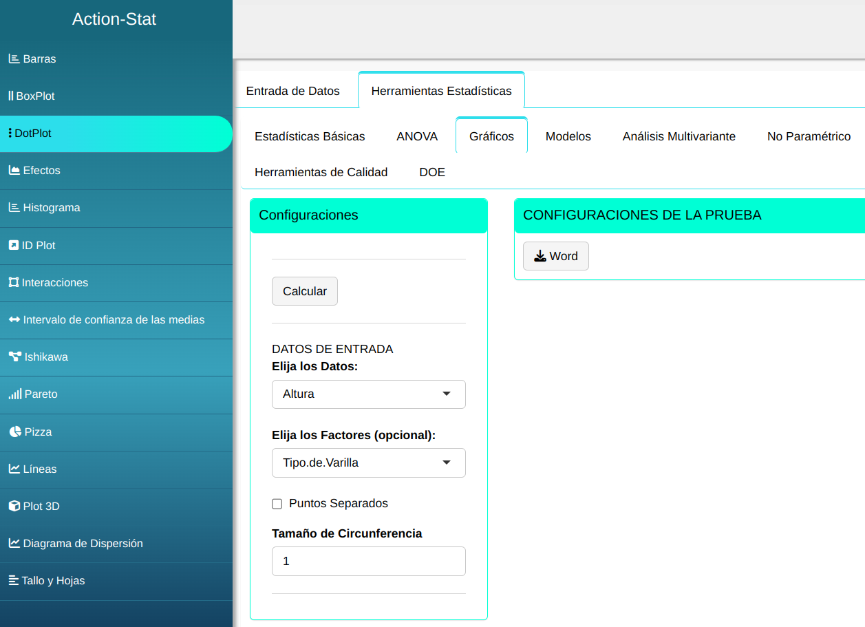 El gráfico de Dotplot es elaborado, conforme la configuración de la figura de abajo.
