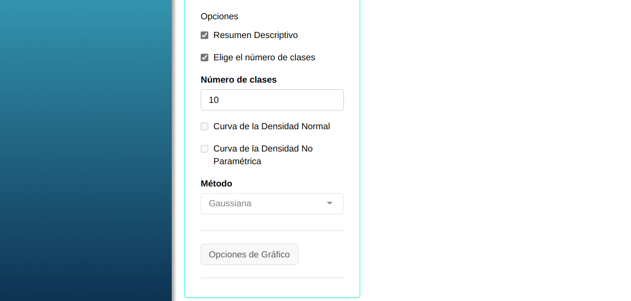 Haremos un Histograma. Configuramos conforme la figura abajo.