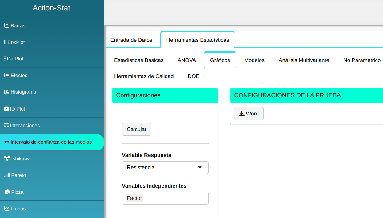 Usaremos la herramienta Intervalo de confianza medio. Configuramos conforme la figura de abajo.