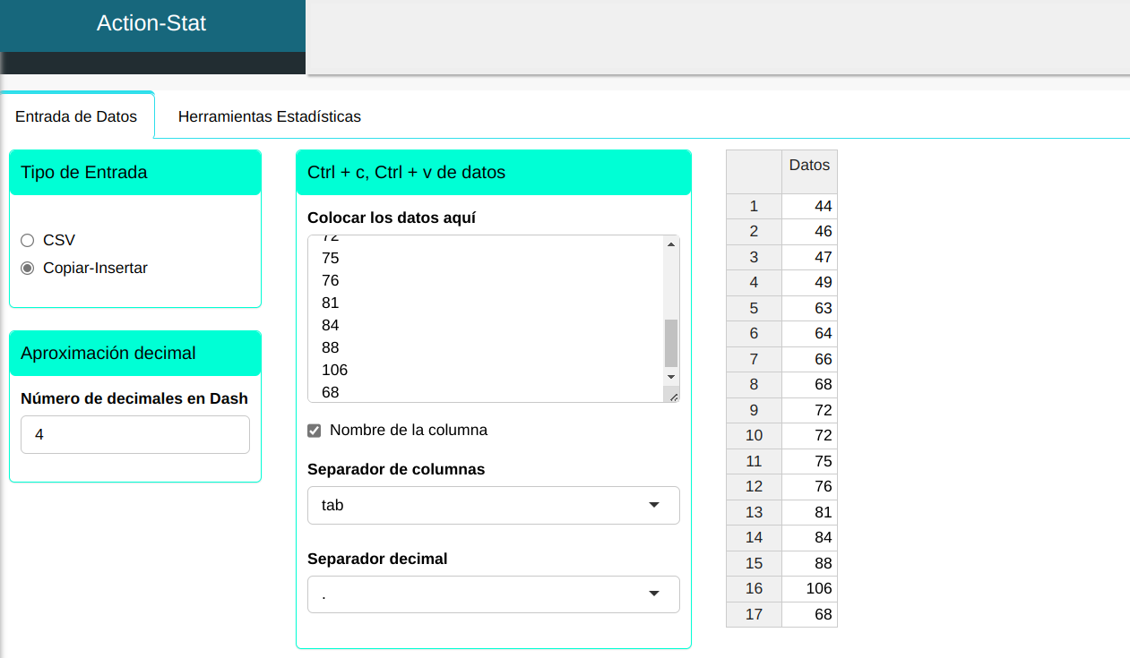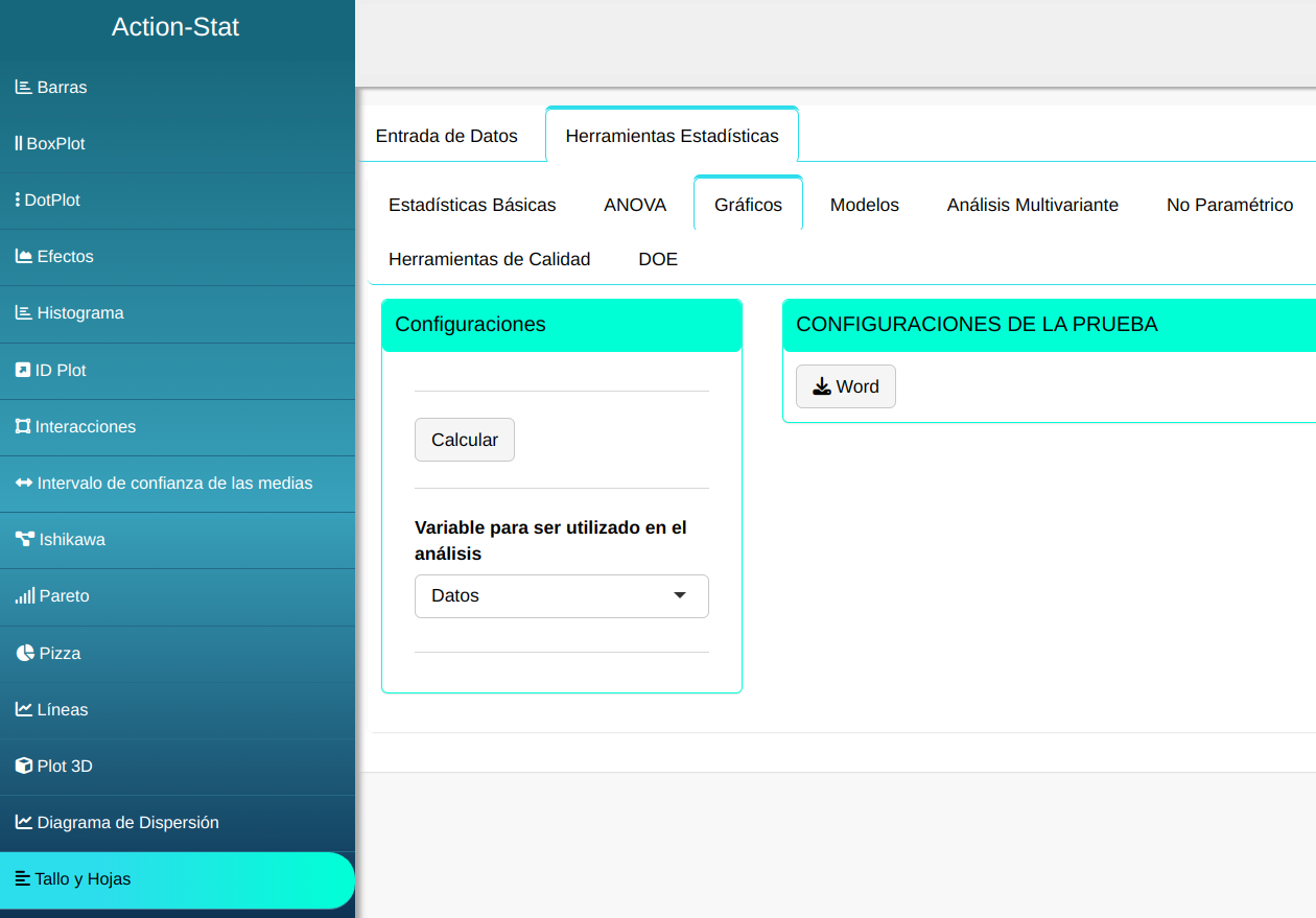 Haremos el diagrama de ramas y hojas. Configuramos conforme la figura abajo.