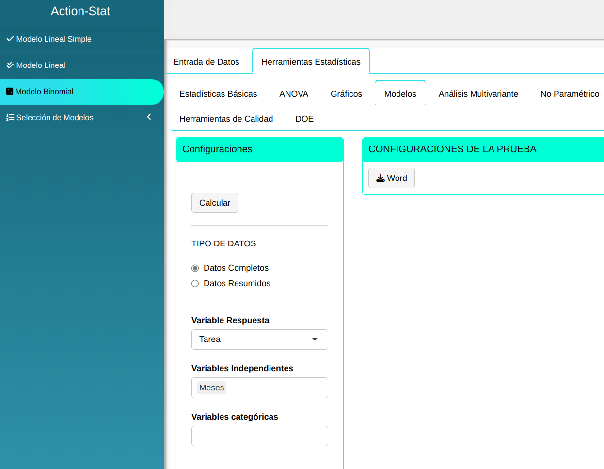 En seguida, haga un clic en Calcular para obtener los resultados. También es posible generar los análisis y descargar en el formato Word.