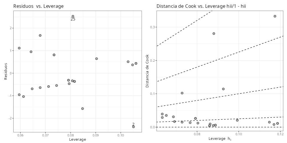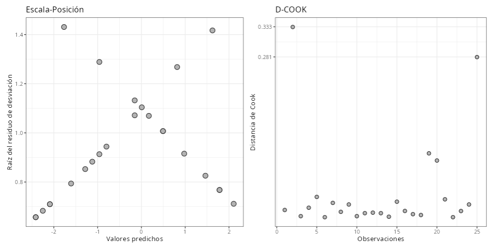 | Residuo Desviance | Residual de Pearson | Leverage | Distancia de Cook | |