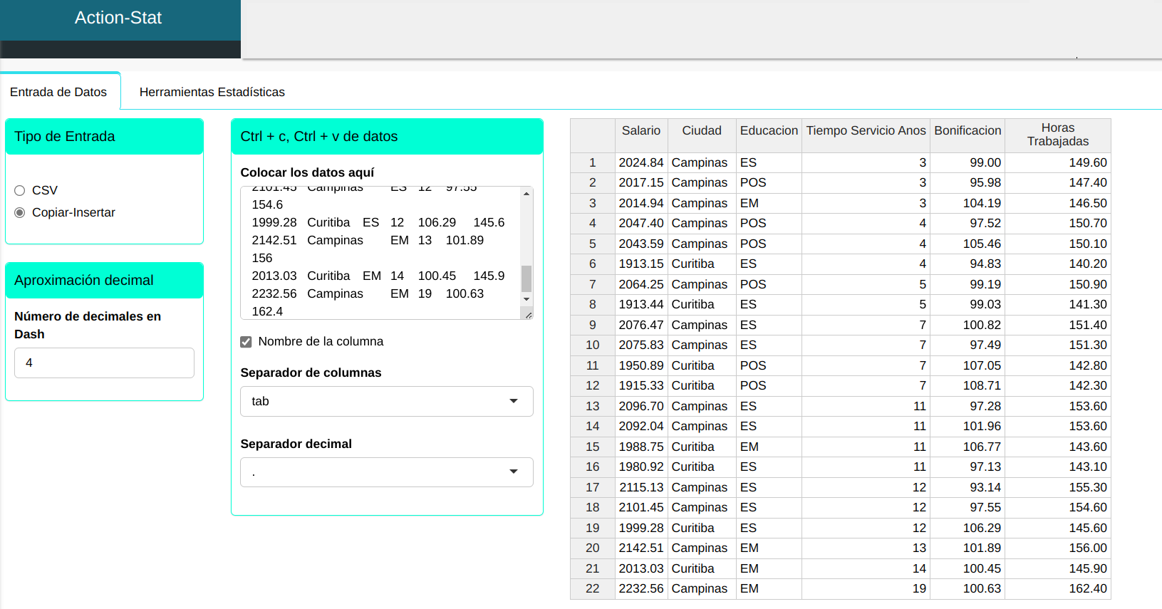 | Salário | Ciudad | Educación | Tiempo Servicio Años | Bonificación | Horas Trabajadas |
