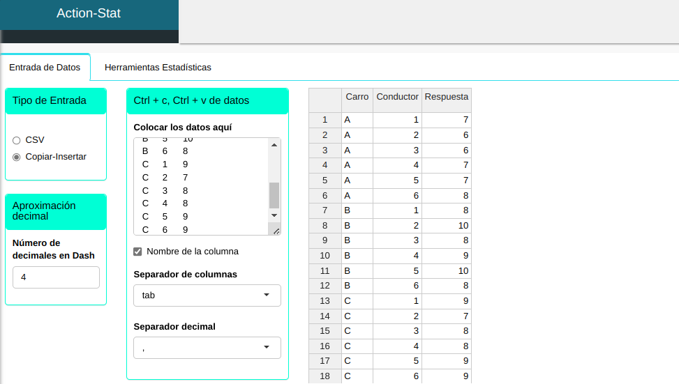 En una evaluación del desempeño de un vehículo. seis conductores evaluaron tres carros (A, B y C) en un estudio aleatorio. El objetivo del la investigación es evaluar el rendimiento de los vehículos assumiendo que la marca del vehículo no influye en las calificaciones. En el cuadro, tenemos las clasificaciones de cada carro, según cada conductor, en una escala del 1 al 10.