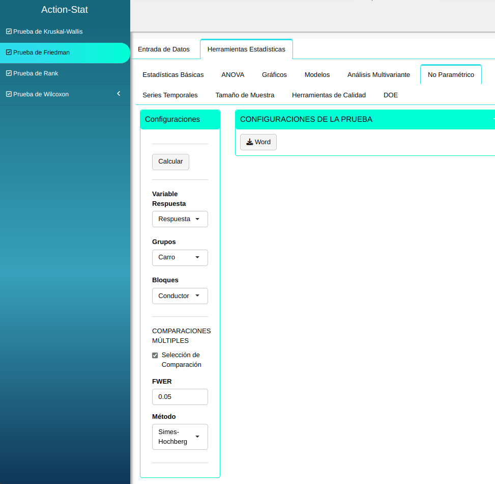 La prueba de Friedman se realizará utilizando la configuración que se muestra en la siguiente figura.