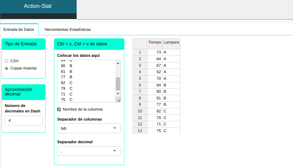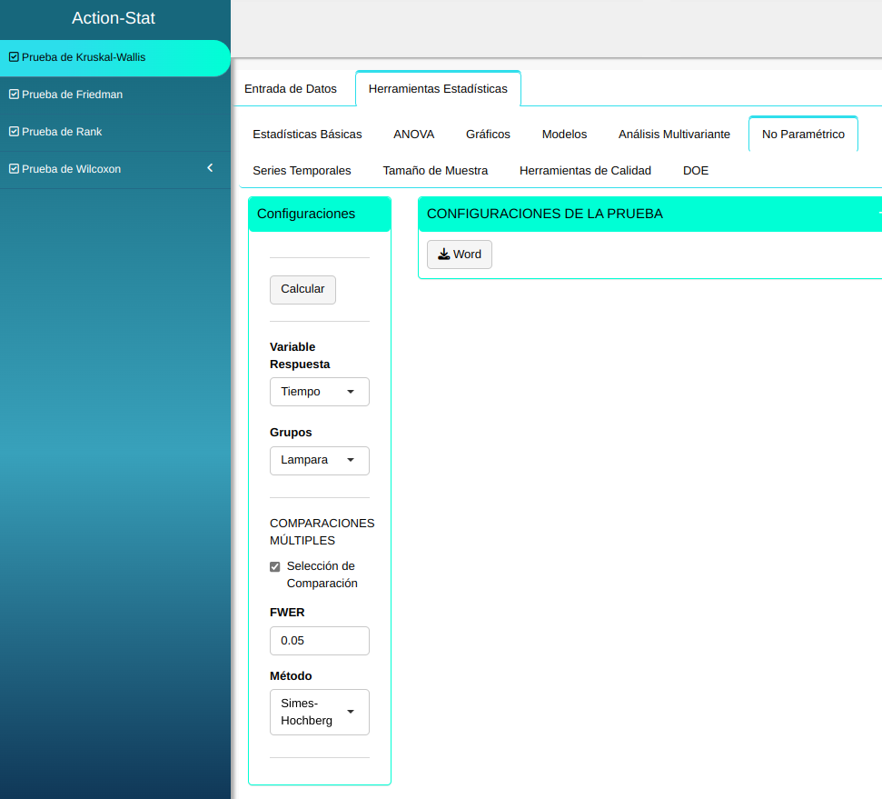 La prueba de Kruskal-Wallis se realizará utilizando la configuración que se muestra en la siguiente figura.