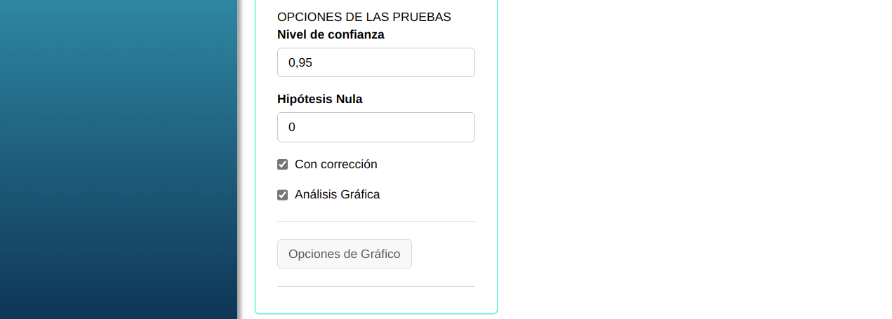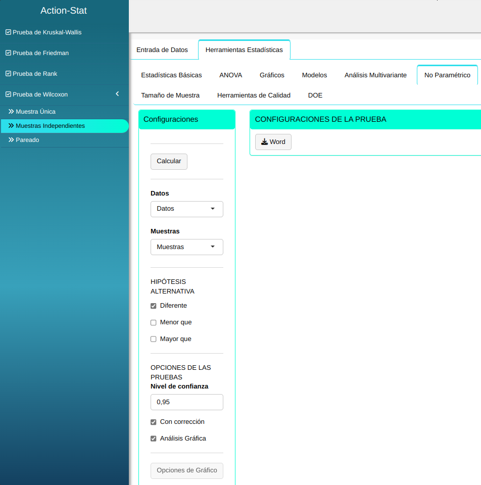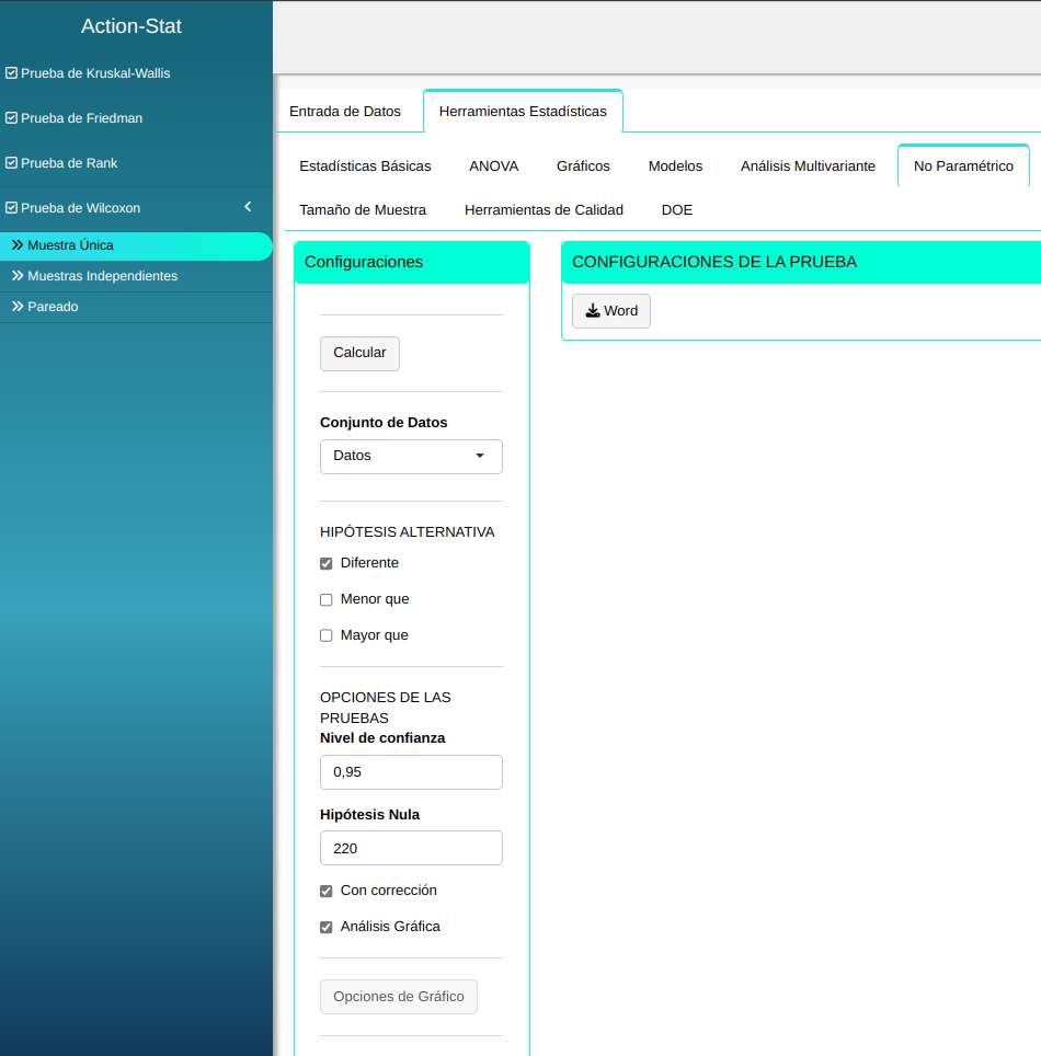 La prueba de Wilcoxon se llevará a cabo utilizando los ajustes que se muestran en la siguiente figura.