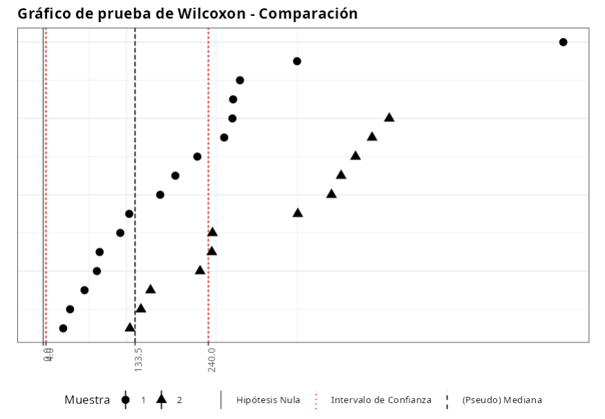 Utilizando la prueba de Wilcoxon, comprobamos la pseudo medianas, para muestras únicas, muestras independientes y muestras pareadas.