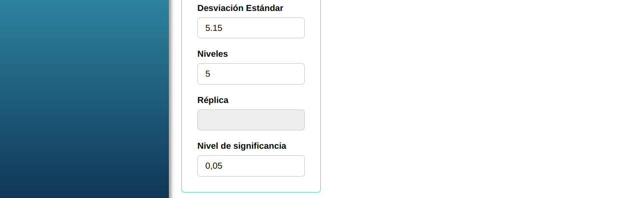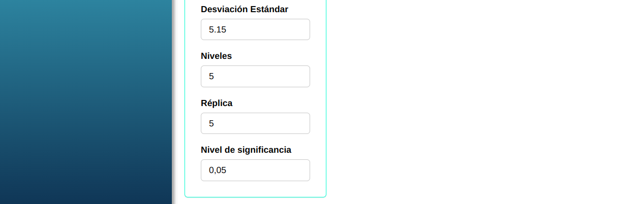 | Número de niveles | Observación por nivel | Desviación estándar |
