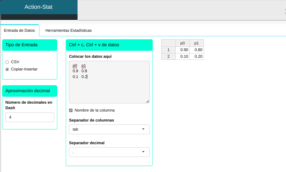 | Proporción | 0.9 0.1 |